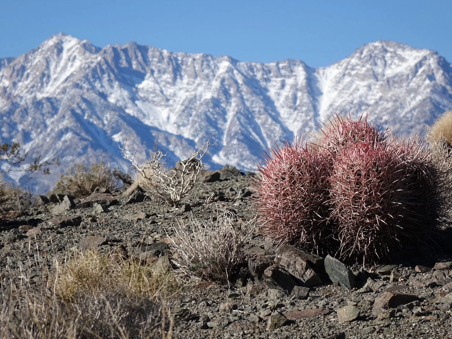 Cottontop cactus / view from the Inyo Mountains / winter light and mood