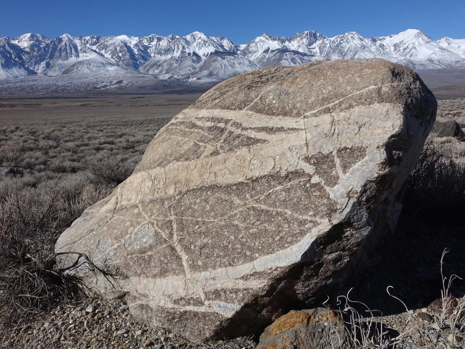Stripes on a boulder / at the base of the Inyos / four wheel drive helpful
