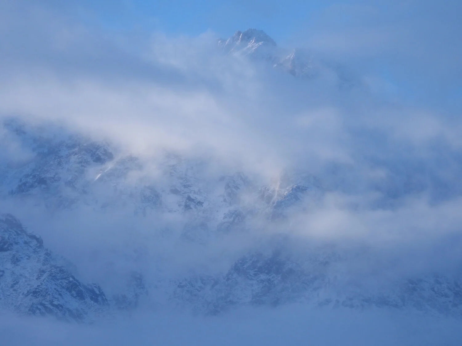 Independence Peak / emerges from a snowstorm / nice weather ahead