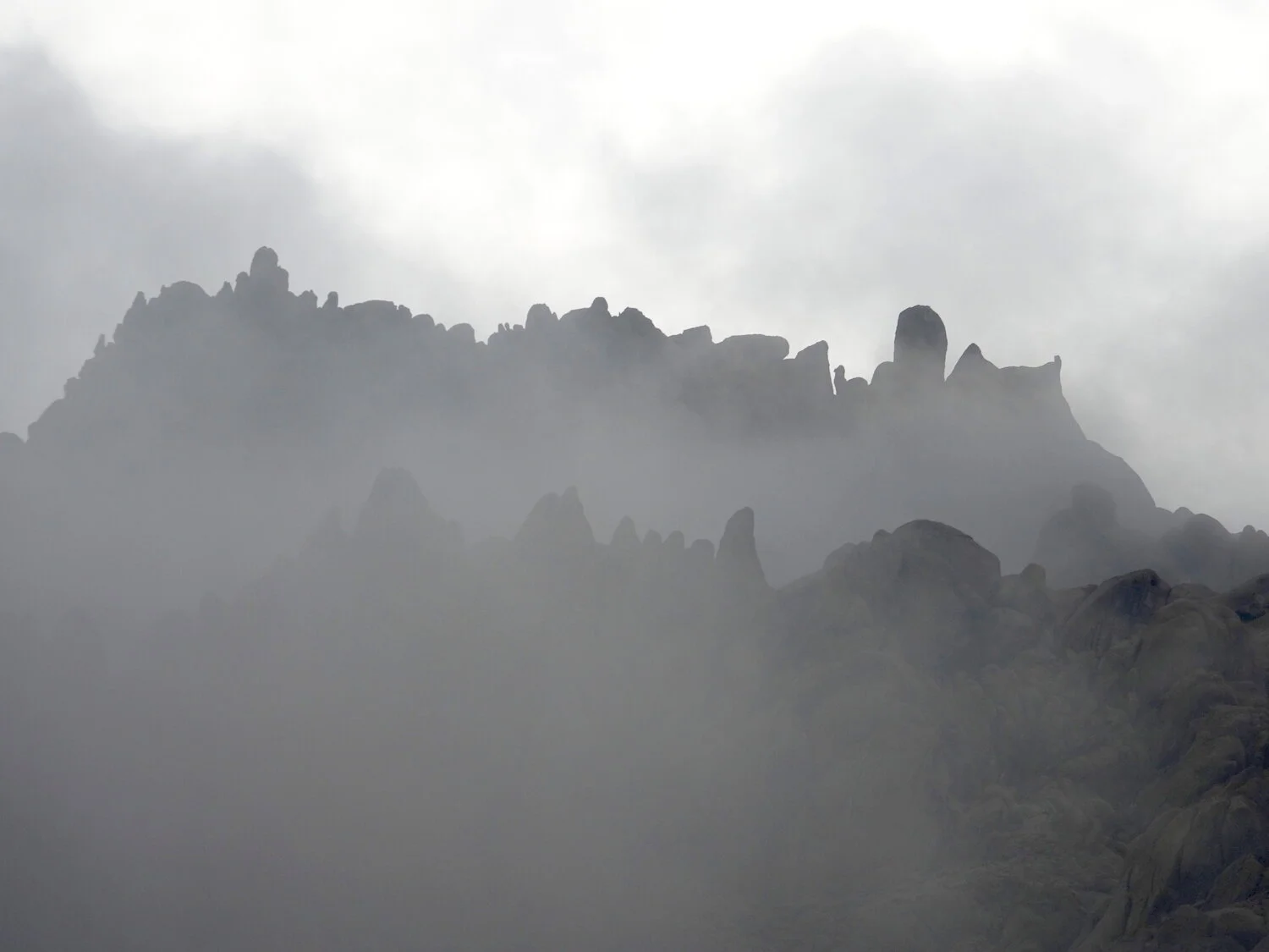 Clearing fog reveals / peaks you never know were there / Eastern Sierra